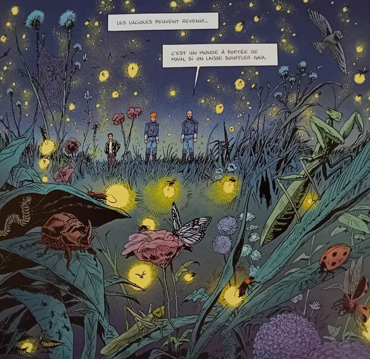 Ressources est une très belle BD, magnifiquement illustrée (je n’ai malheureusement pu n’en donner qu’un maigre aperçu), et accessible sur le fond. Un livre qui démontre par l’exemple la proposition de Philippe Bihouix : réserver nos ressources à des usages qui nous rendent plus humains – un bande dessinée qui nous élève esthétiquement et intellectuellement. A lire !